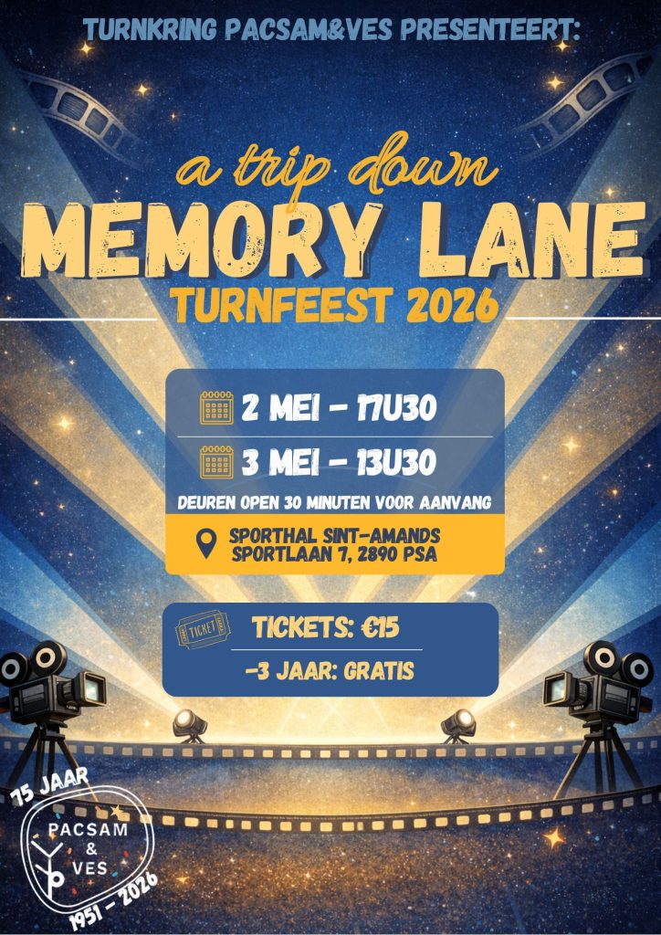 Duik met ons mee in een trip down memory lane bij ons tweejarlijks turnfeest – dé speciale 75e verjaardagseditie van Turnkring PACSAM&VES! 🏅✨ Herbeleef onze glorieuze geschiedenis, iconische turnfeesten en epische momenten vol flips, twists en teamspirit. Programma: Tickets: €15 (-3 jaar gratis). Hou zeker onze sociale media in het oog voor de info over onze […]